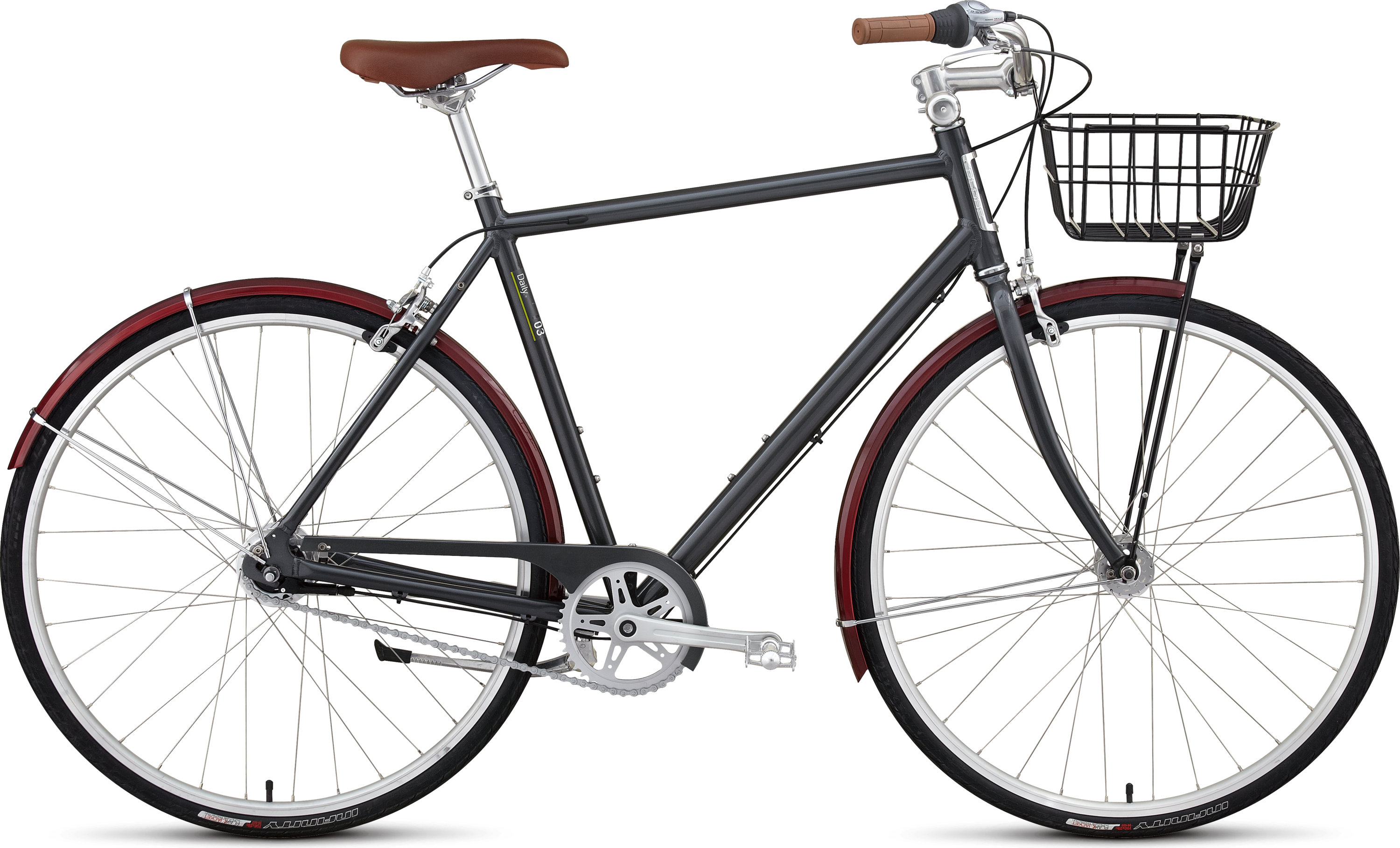 Go anywhere and show up fresh on the Daily 3. Lightweight aluminum and seven internal gears keep you and bike good as new; full coverage fenders save your clothes from city grime; and a front basket, not your back, carries everything you need.