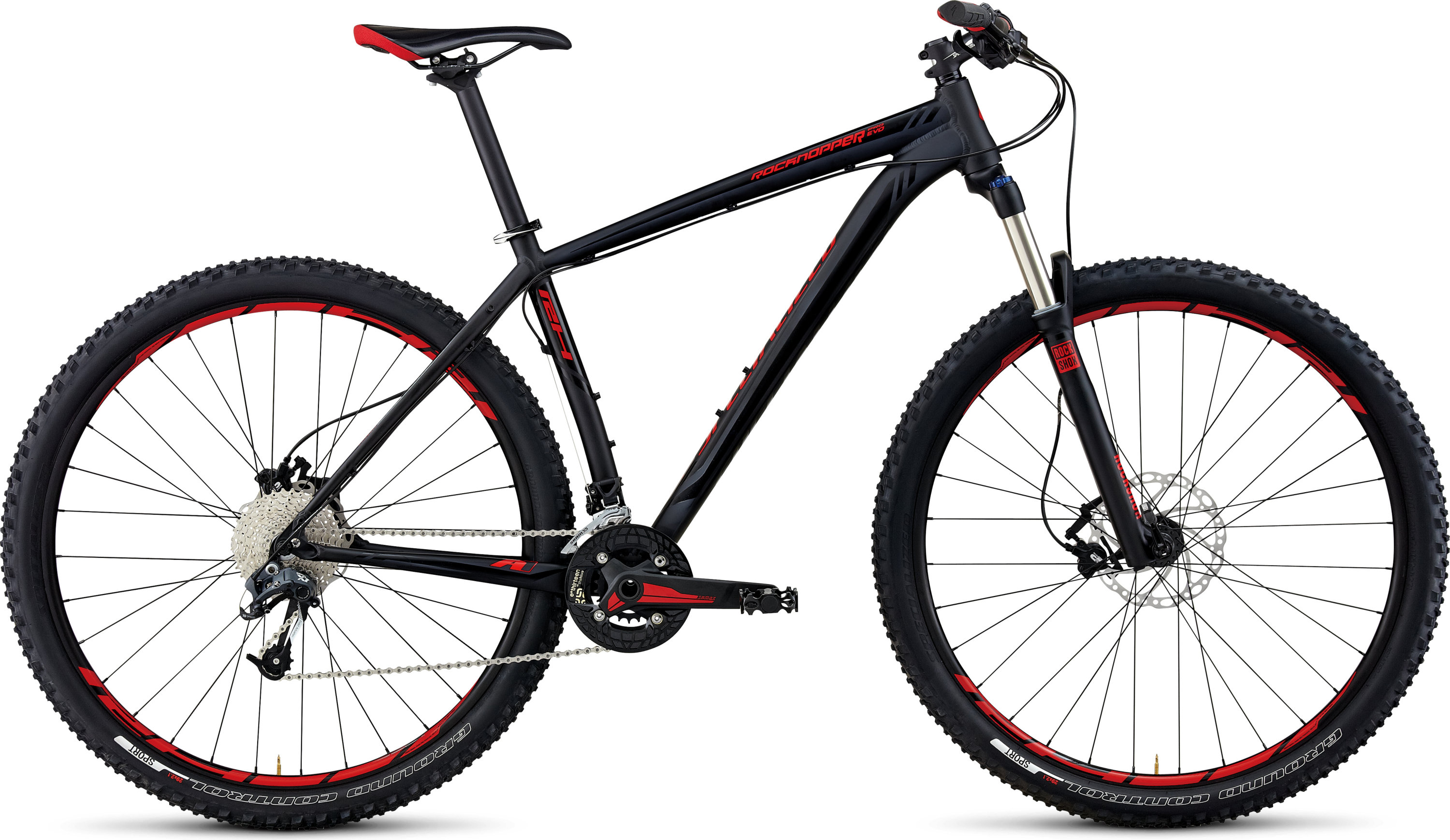 The Rockhopper is a trail-capable machine equipped with Tektro hydraulic disc brakes, 29-inch wheels, and a Shimano drivetrain, allowing you to ride deep into your favorite trails with confidence.